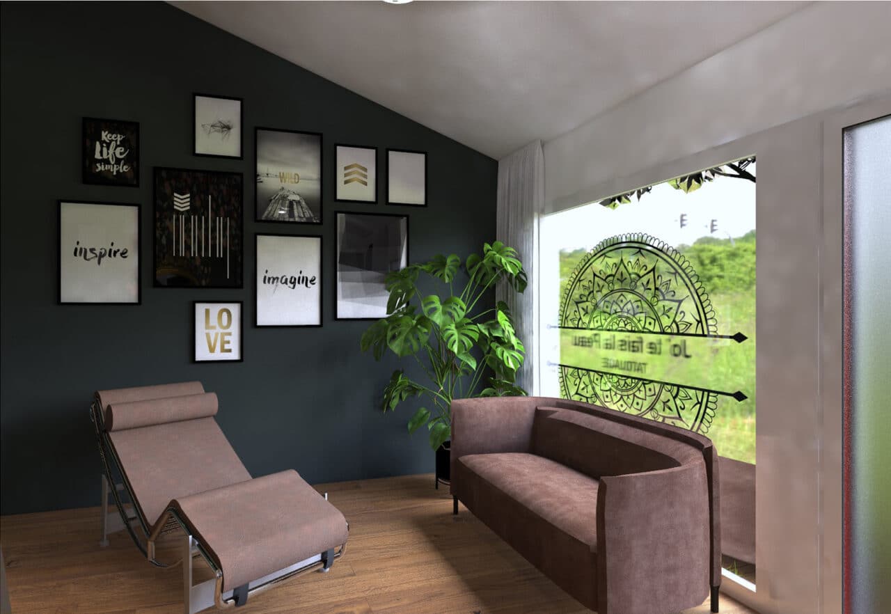 Ce projet consiste à transformer le garage d’une habitation en un salon de tatouage chaleureux, adapté aussi bien à la pratique professionnelle qu’à l’accueil des clients.